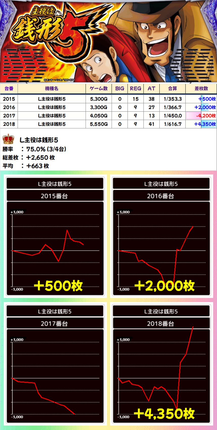 L主役は銭形5 (3/4台+) ➡平均 +663枚