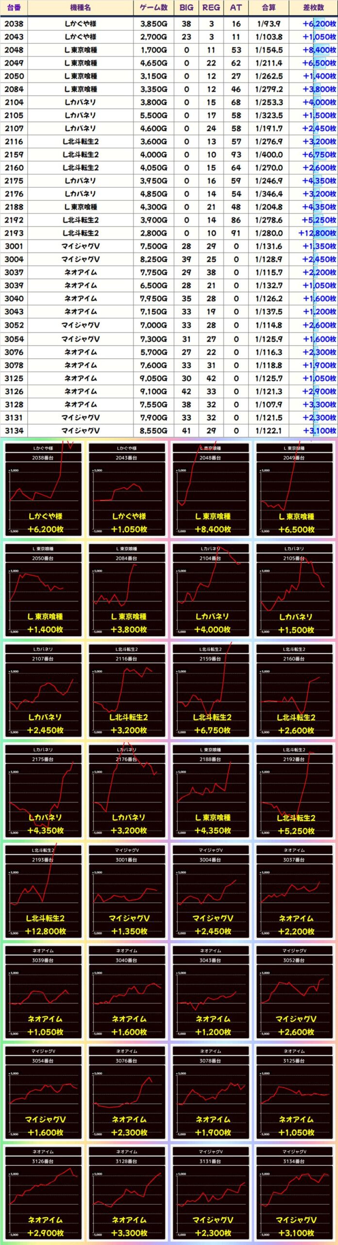 本日の高配分機種は上記の6機種!1000枚以上の優秀台をピックアップ!