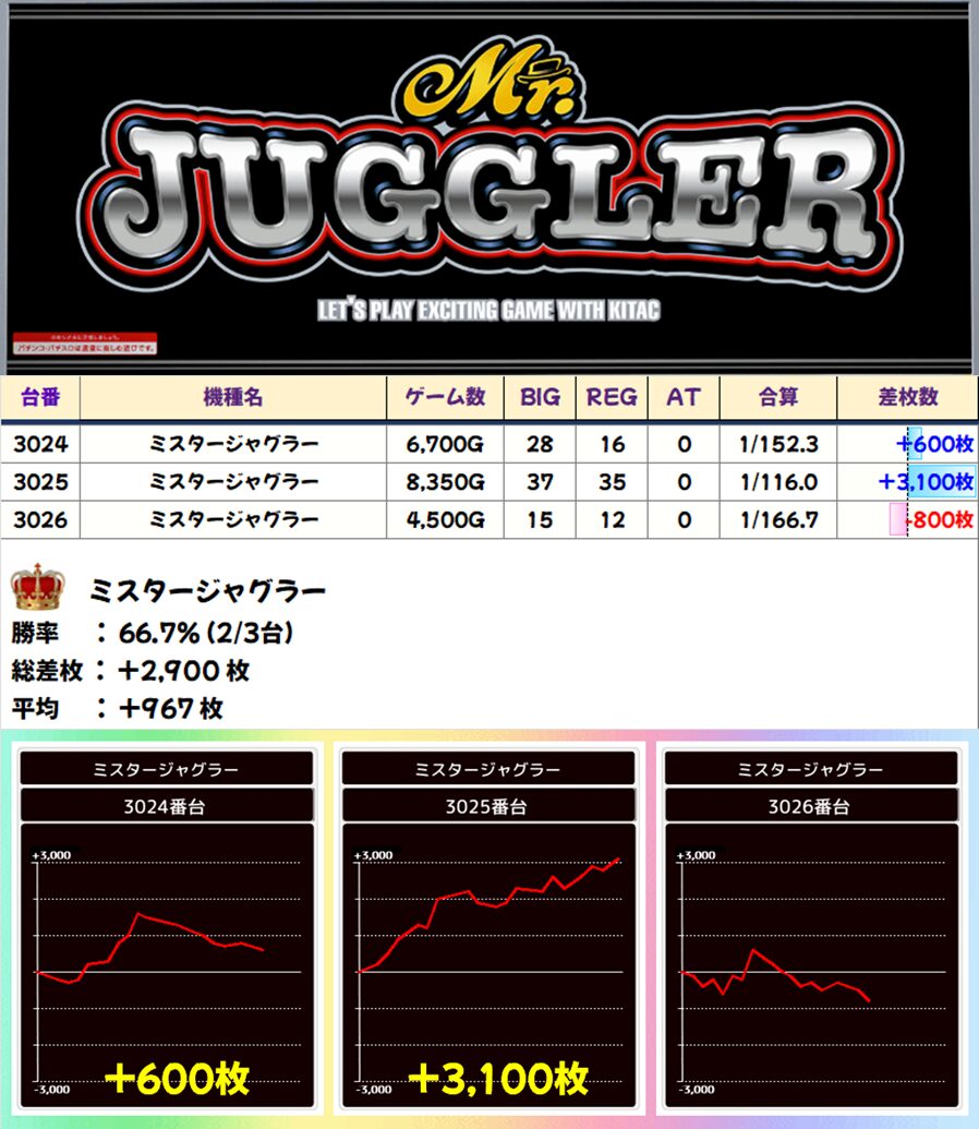 ミスタージャグラー (2/3台+) ➡平均 +967枚