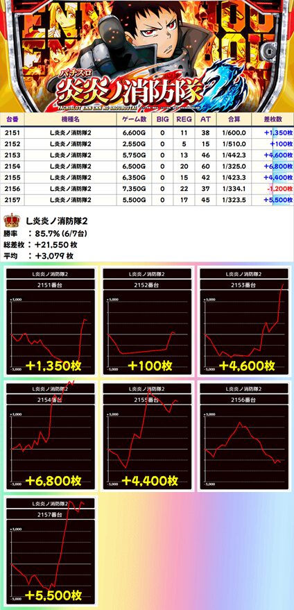 L炎炎ノ消防隊2 (6/7台+) ➡平均 +3,079枚