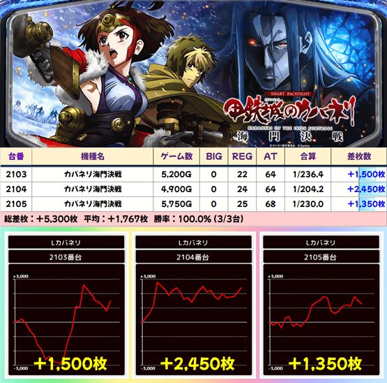 【3台並び】2103-2105番台 甲鉄城のカバネリ海門決戦▶平均+1,767枚