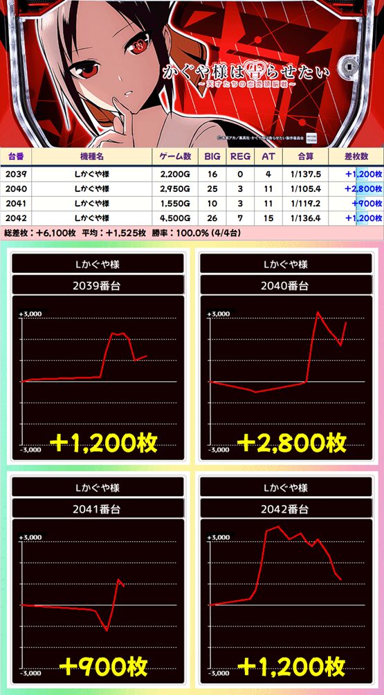 【4台並び】2039-2042番台 かぐや様は告らせたい▶平均+1,525枚