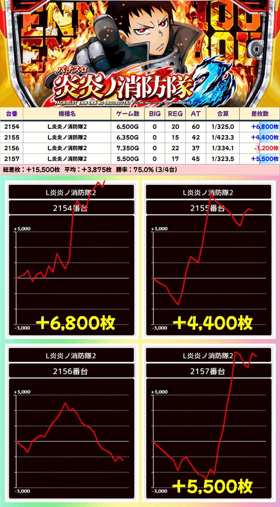 【4台並び】2154-2157番台 炎炎ノ消防隊2▶平均+3,875枚