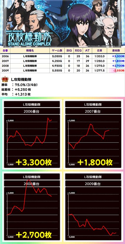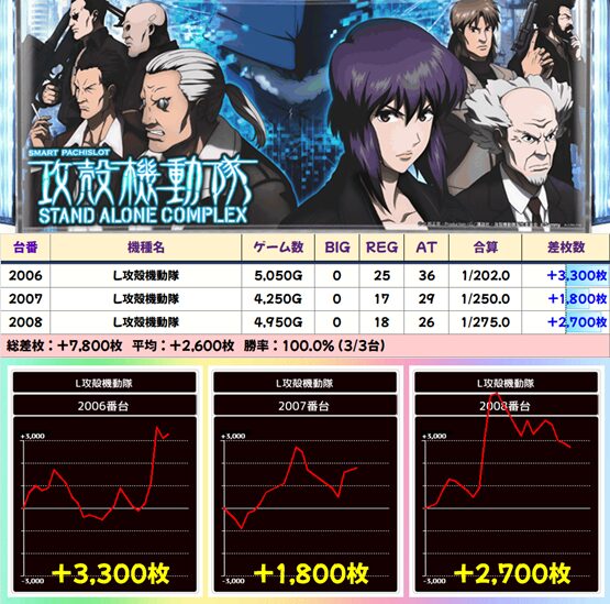 【3台並び】2006-2008番台 攻殻機動隊▶平均+2,600枚