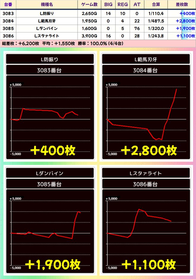【4台並び】3083-3086番台 防振り-レヴュースター▶平均+1,550枚