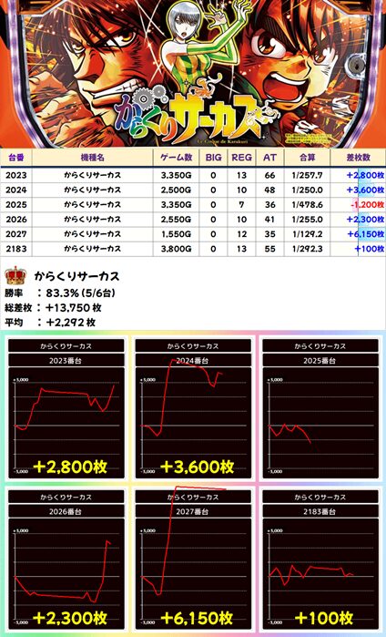 からくりサーカス (5/6台+) ➡平均 +2,292枚