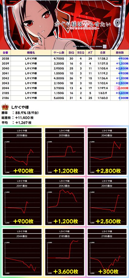 Lかぐや様 (8/9台+) ➡平均 +1,267枚