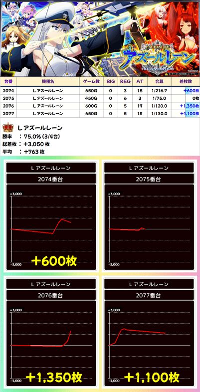 L アズールレーン (3/4台+) ➡平均 +763枚