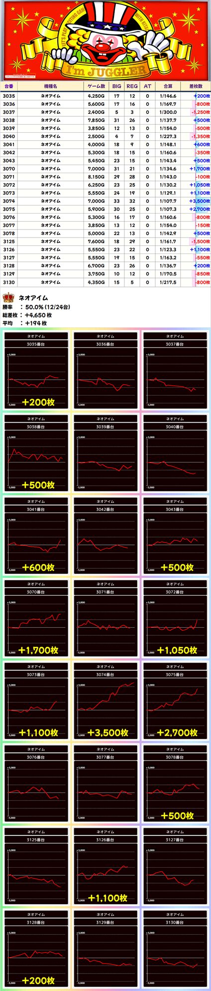 ネオアイム (12/24台+) ➡平均 +194枚