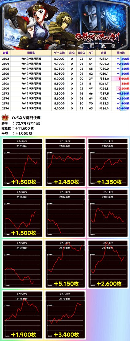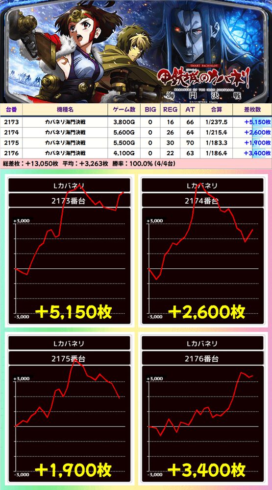 【4台並び】2173-2176番台 甲鉄城のカバネリ海門決戦▶平均+3,263枚