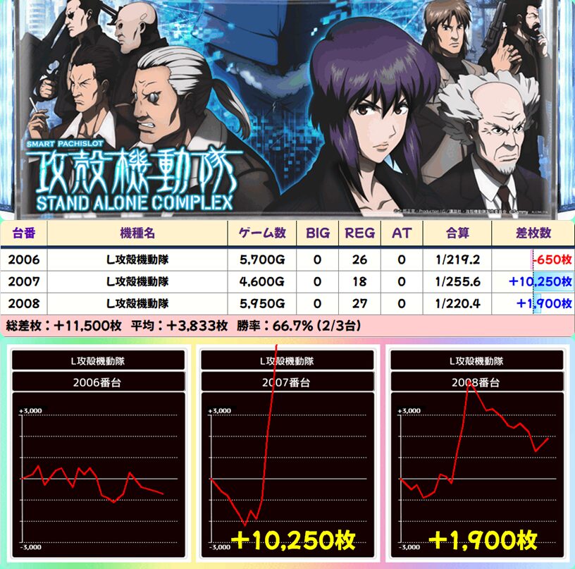 【3台並び】2006-2008番台 攻殻機動隊▶平均+3,833枚