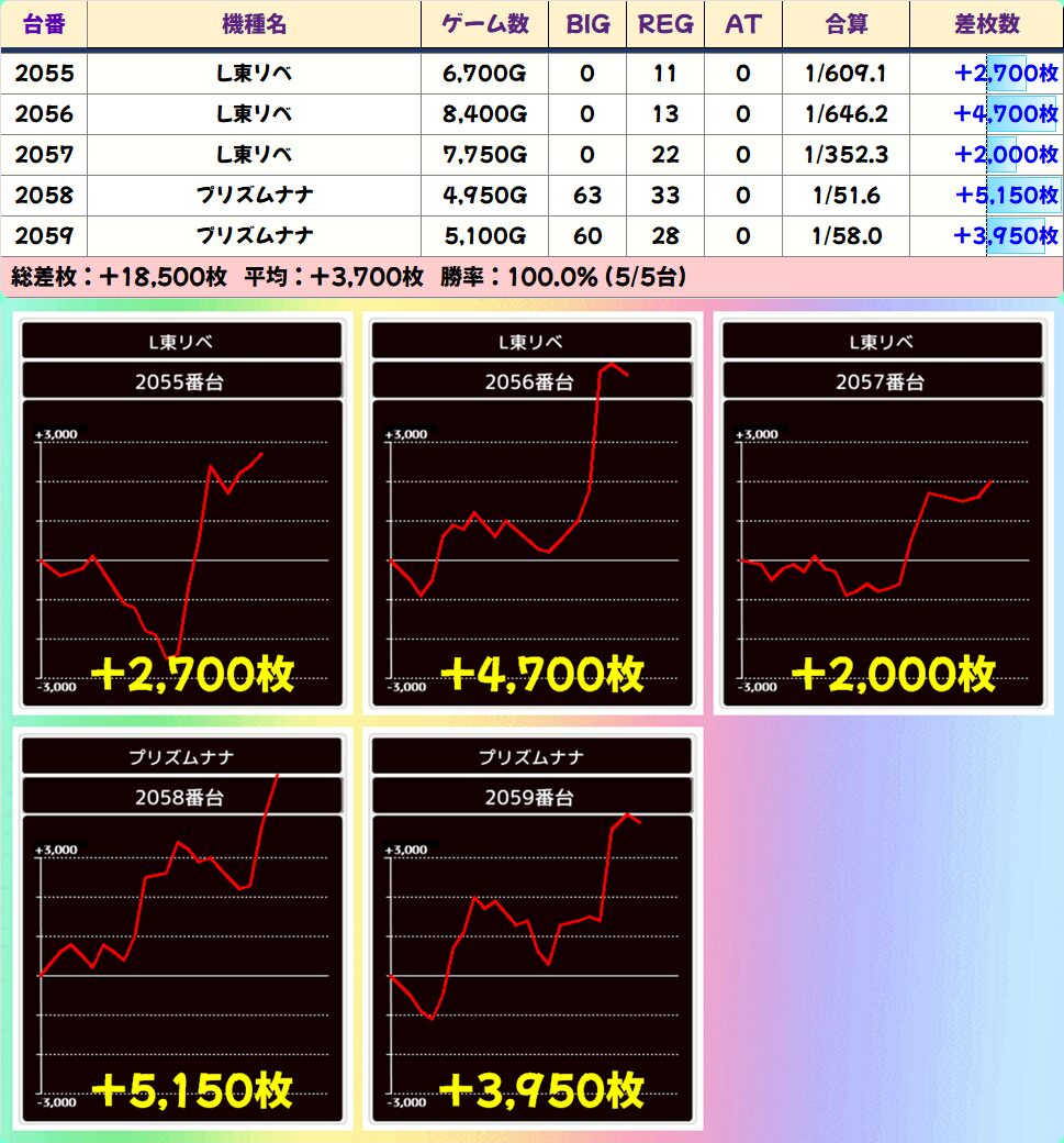 L東リベ (4/6台+) ➡平均 +1,425枚