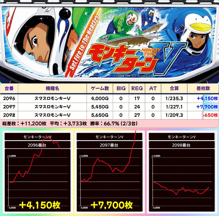 【3台並び】2096-2098番台 モンキーターン▶平均+3,733枚