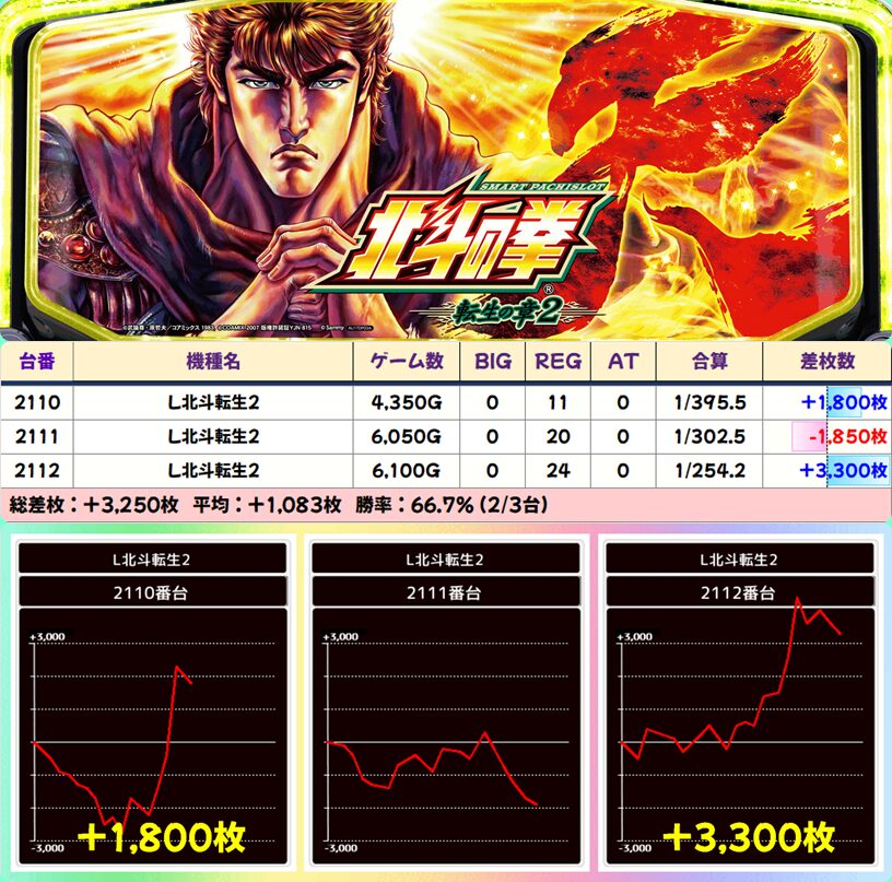 【4台並び】2110-2113番台 北斗の拳転生の章2▶平均+1,638枚