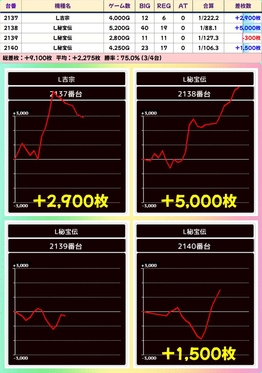 【4台並び】2137-2140番台 ヨシムネ-秘宝伝▶平均+2,275枚