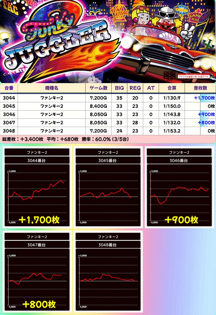ファンキー2 (5/10台+) ➡平均 +80枚