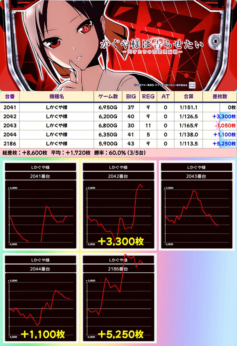 【5台並び】2041-2044,2186番台 かぐや様は告らせたい▶平均+1,320枚