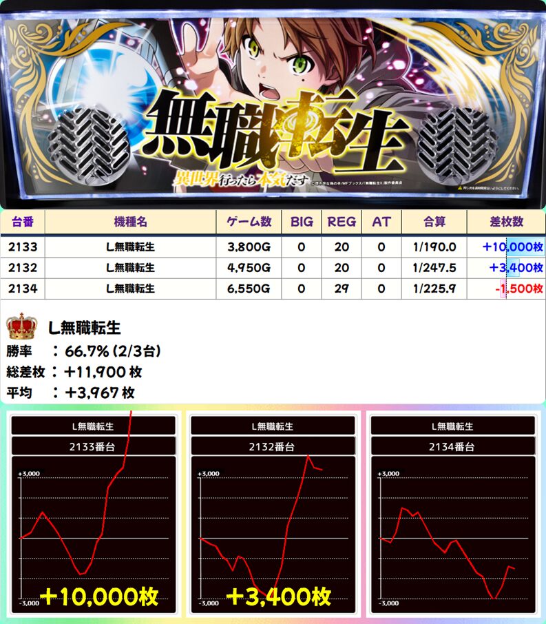 L無職転生 (2/3台+) ➡平均 +3,967枚