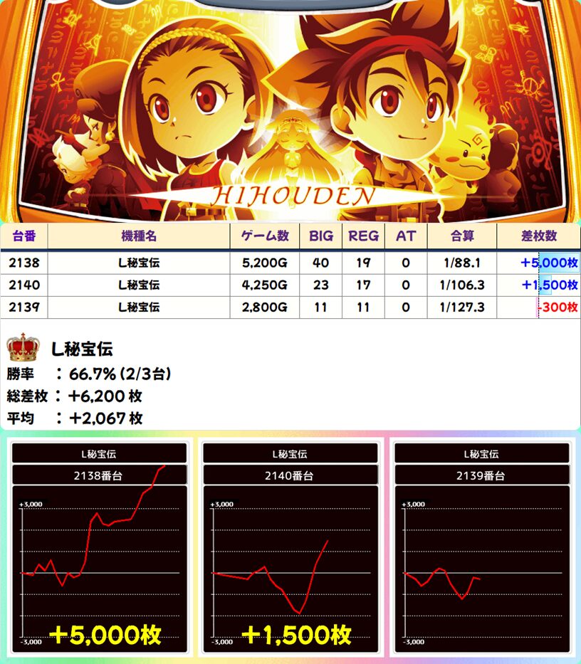 L秘宝伝 (2/3台+) ➡平均 +2,067枚