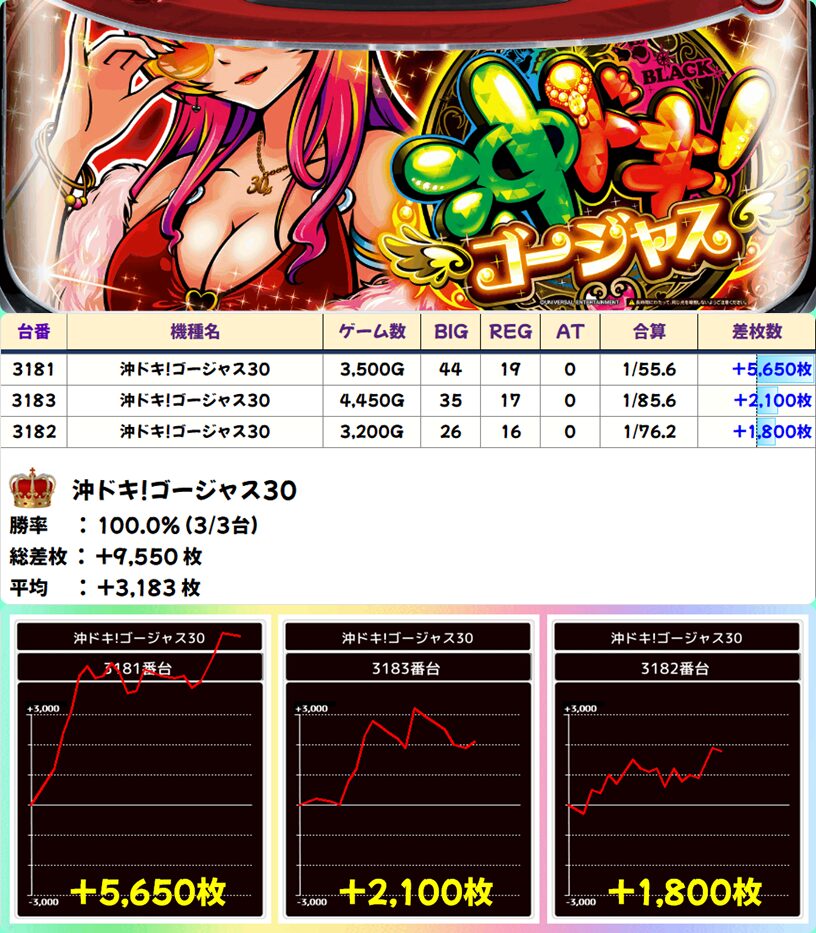 沖ドキ!ゴージャス30 (3/3台+) ➡平均 +3,183枚
