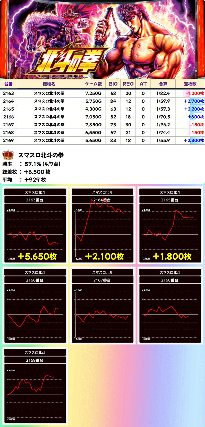 スマスロ北斗の拳 (4/7台+) ➡平均 +929枚