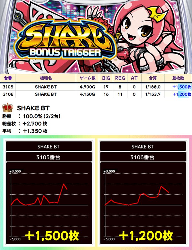 SHAKE BT (2/2台+) ➡平均 +1,350枚