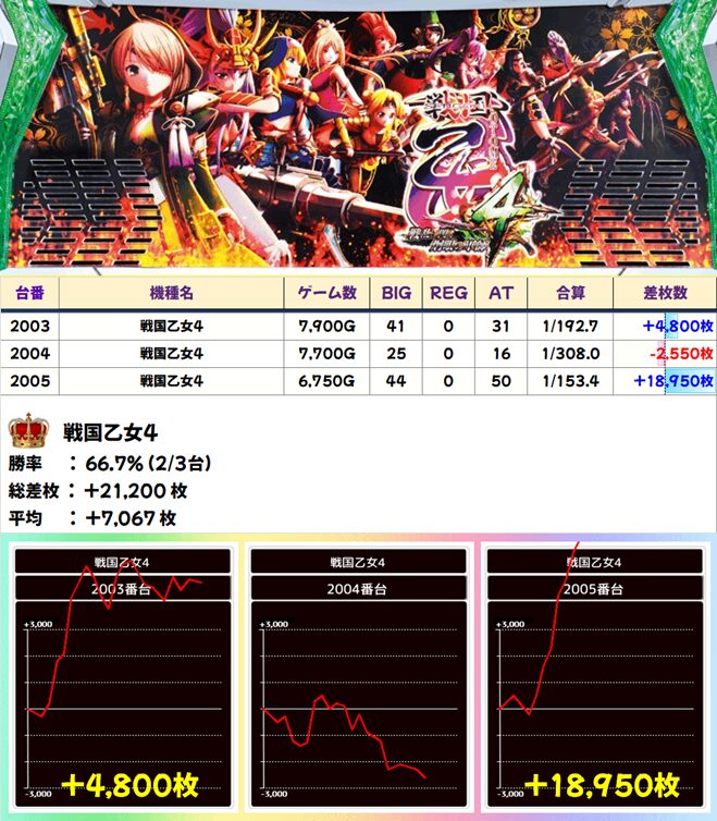 戦国乙女4 (2/3台+) ➡平均 +7,067枚