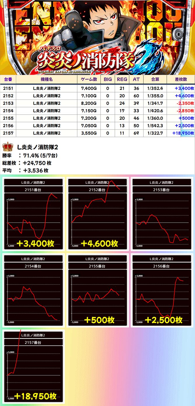 L炎炎ノ消防隊2 (5/7台+) ➡平均 +3,536枚