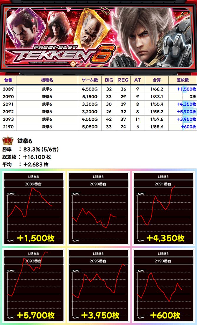 鉄拳6 (5/6台+) ➡平均 +2,683枚