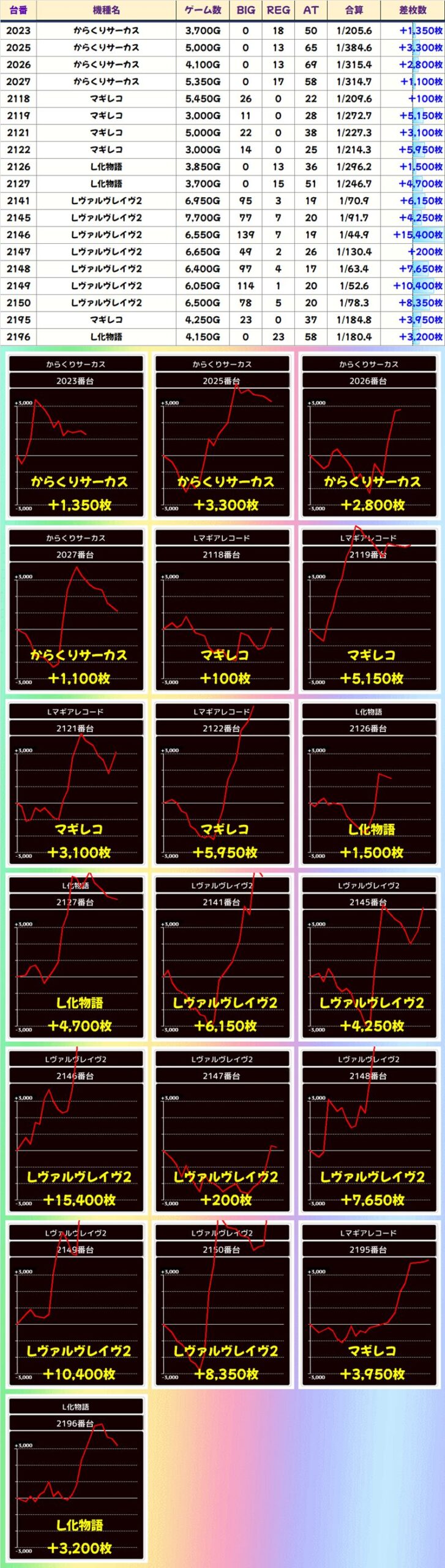 高配分機種も4機種あり!いずれの機種もしっかり差枚がプラスです!