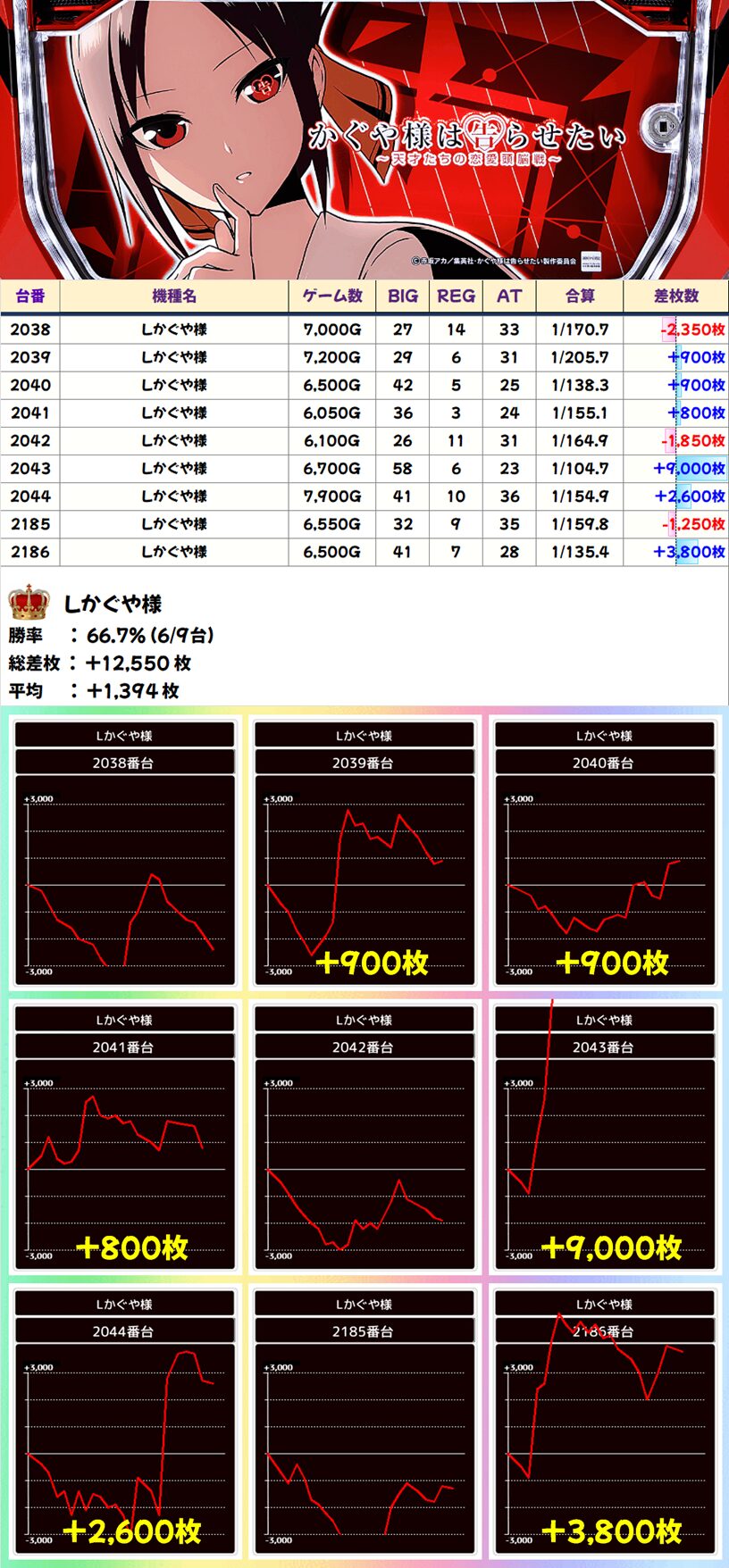 Lかぐや様 (6/9台+) ➡平均 +1,394枚