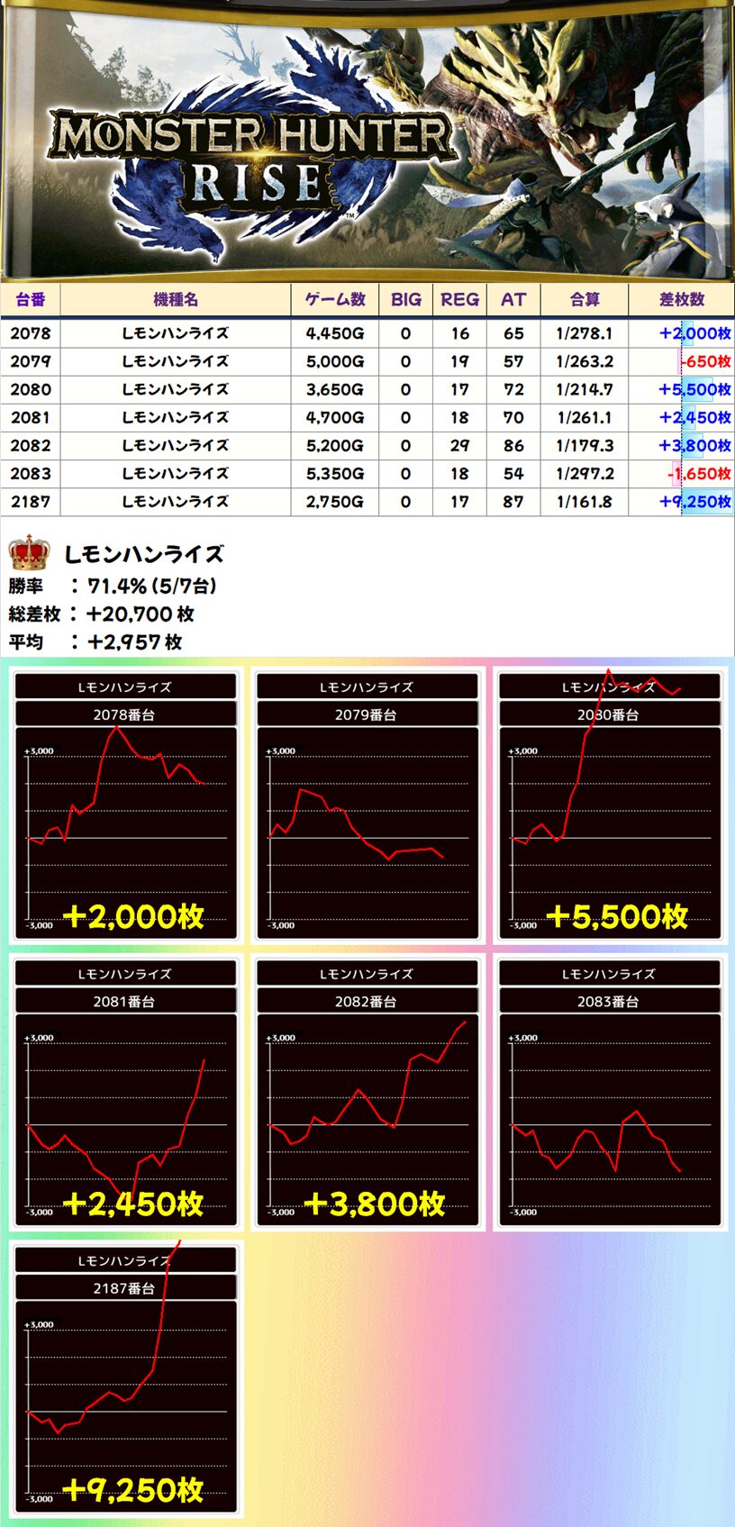 Lモンハンライズ (5/7台+) ➡平均 +2,957枚
