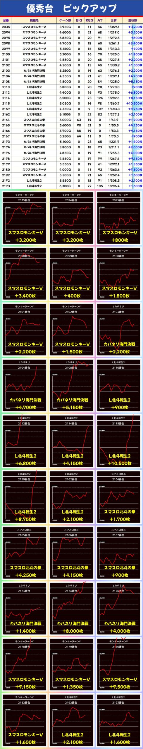 仕掛け個所以外にも大幅プラスの優秀台が随所にアリ!土曜日は単品もしっかり用意されています!