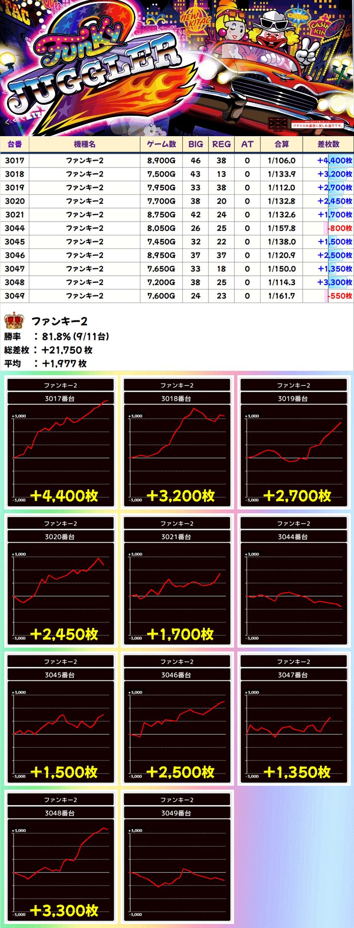 ファンキー2 (9/11台+) ➡平均 +1,977枚