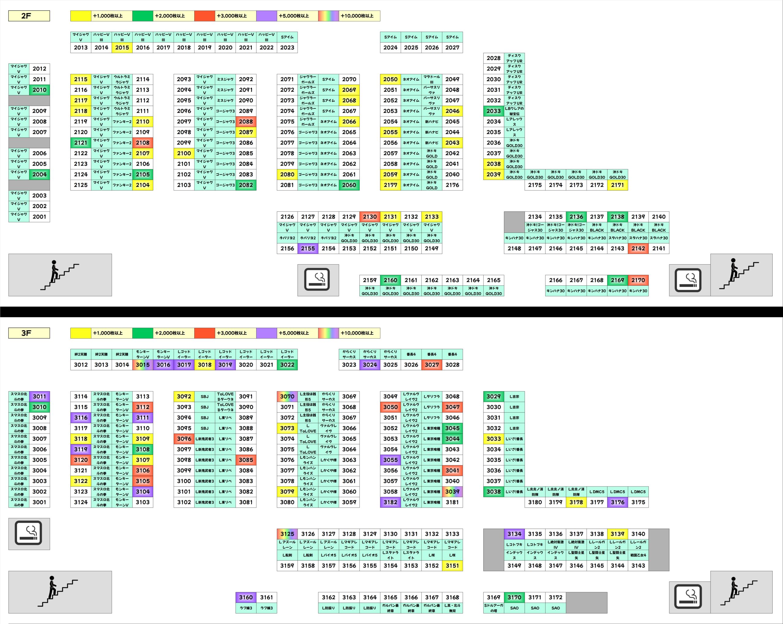 山佐機種以外にも2階ジャグラーから2機種&少台数機種からも全台系濃厚機種が出現しており、今回も第二土曜日仕様の強力な仕掛けが用意されていたようです。