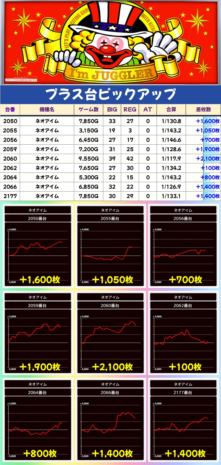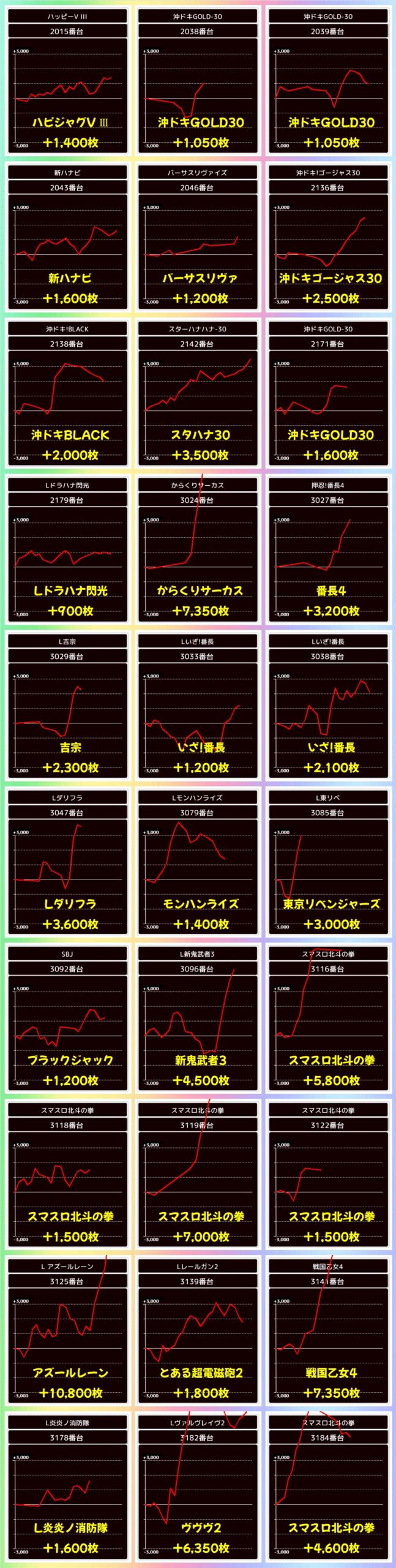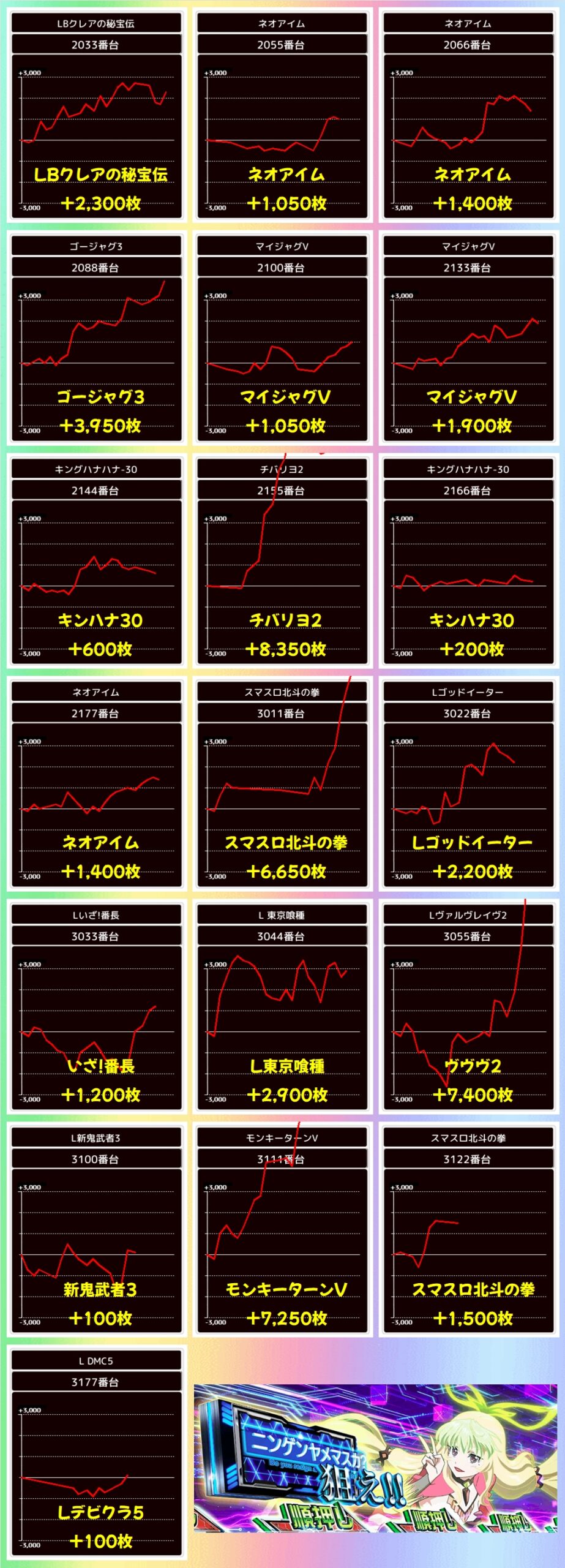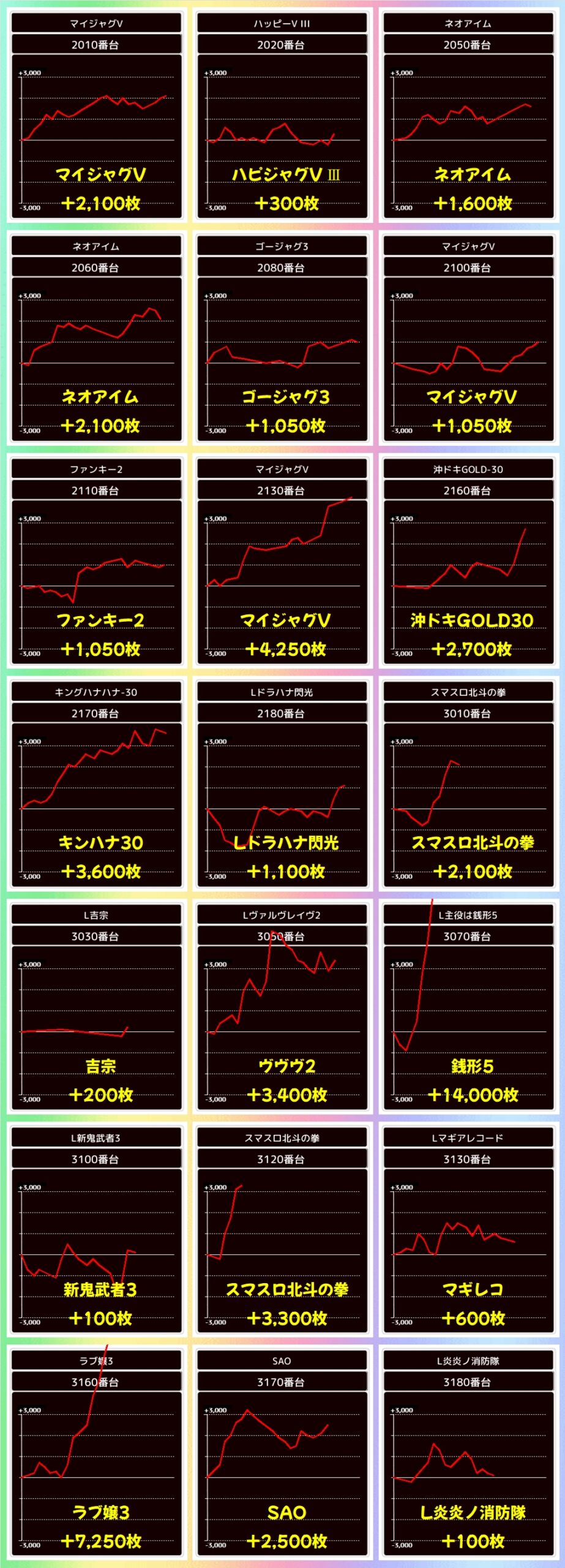 機種イチや少数台にも高設定が多数投入されており、悪番対策もバッチリだったようです。