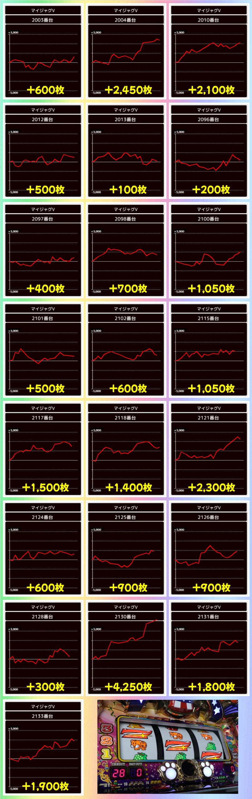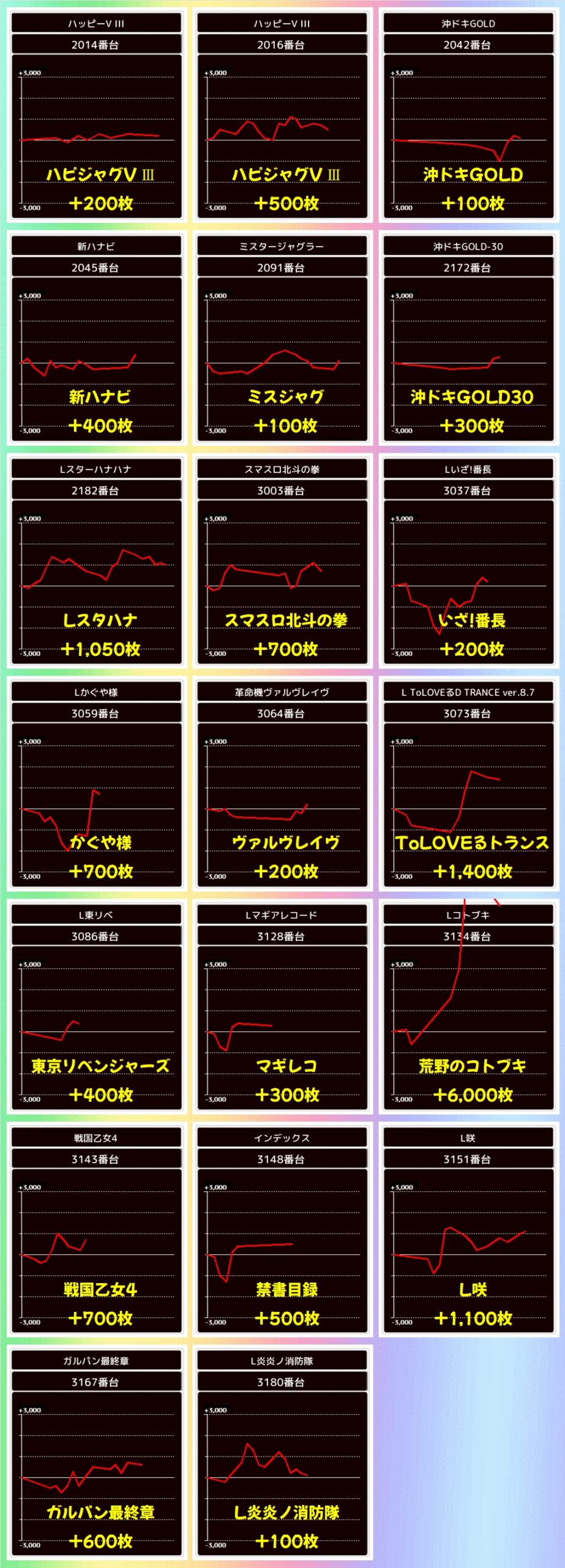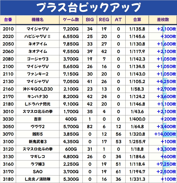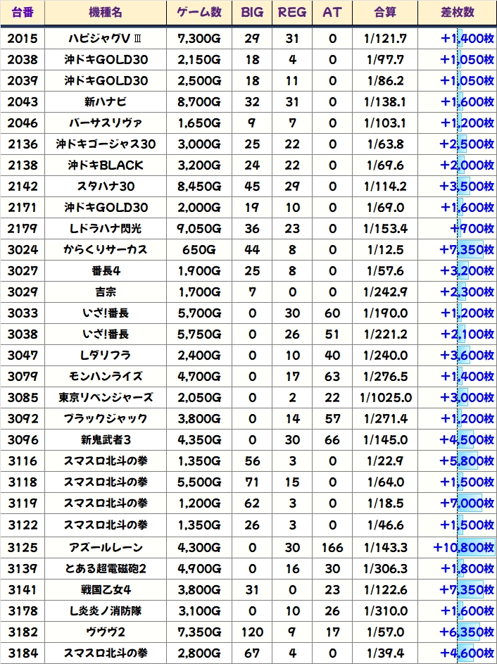 機種イチや少数台にも高設定が多数投入されており、悪番対策もバッチリだったようです。