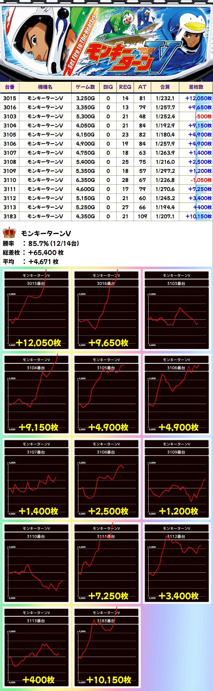 【全台系濃厚】モンキーターンV(12/14台+)→平均+4,671枚