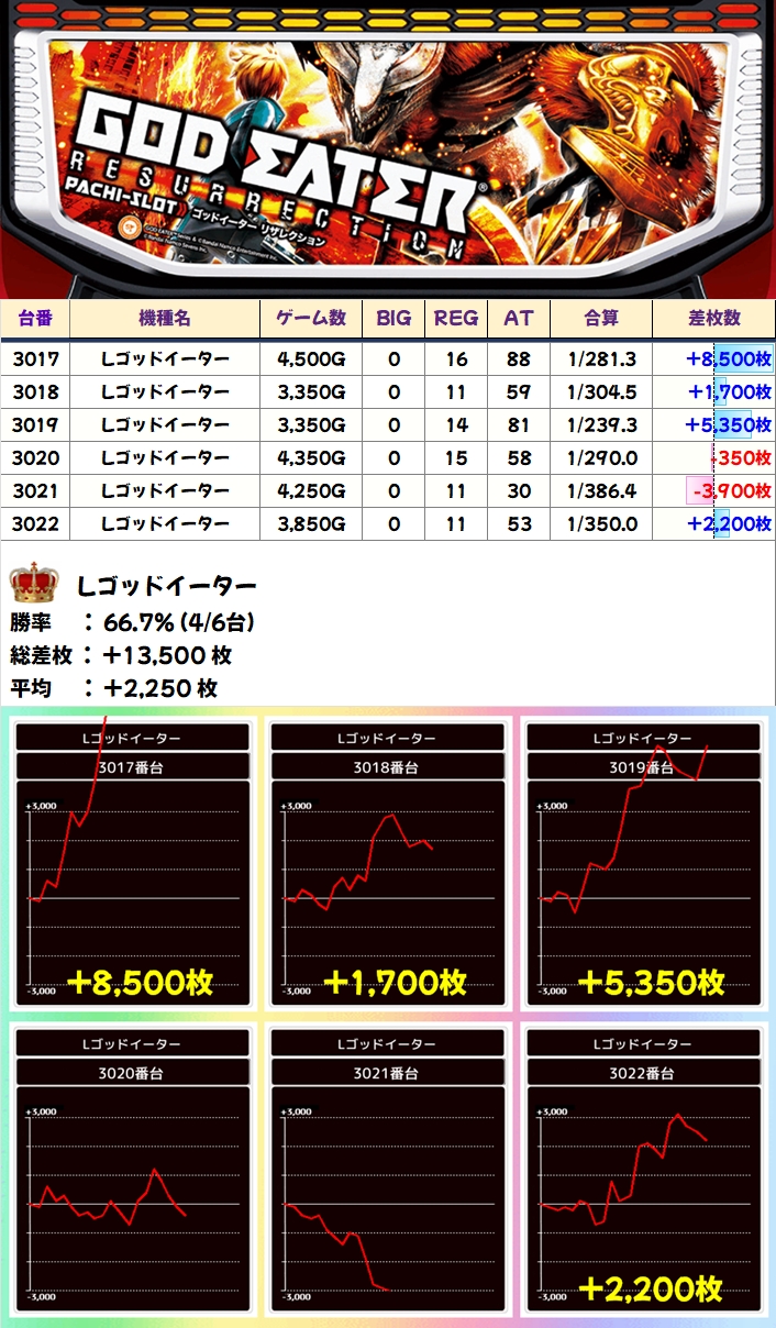 【全台系濃厚】Lゴッドイーター(4/6台+)→平均+2,250枚