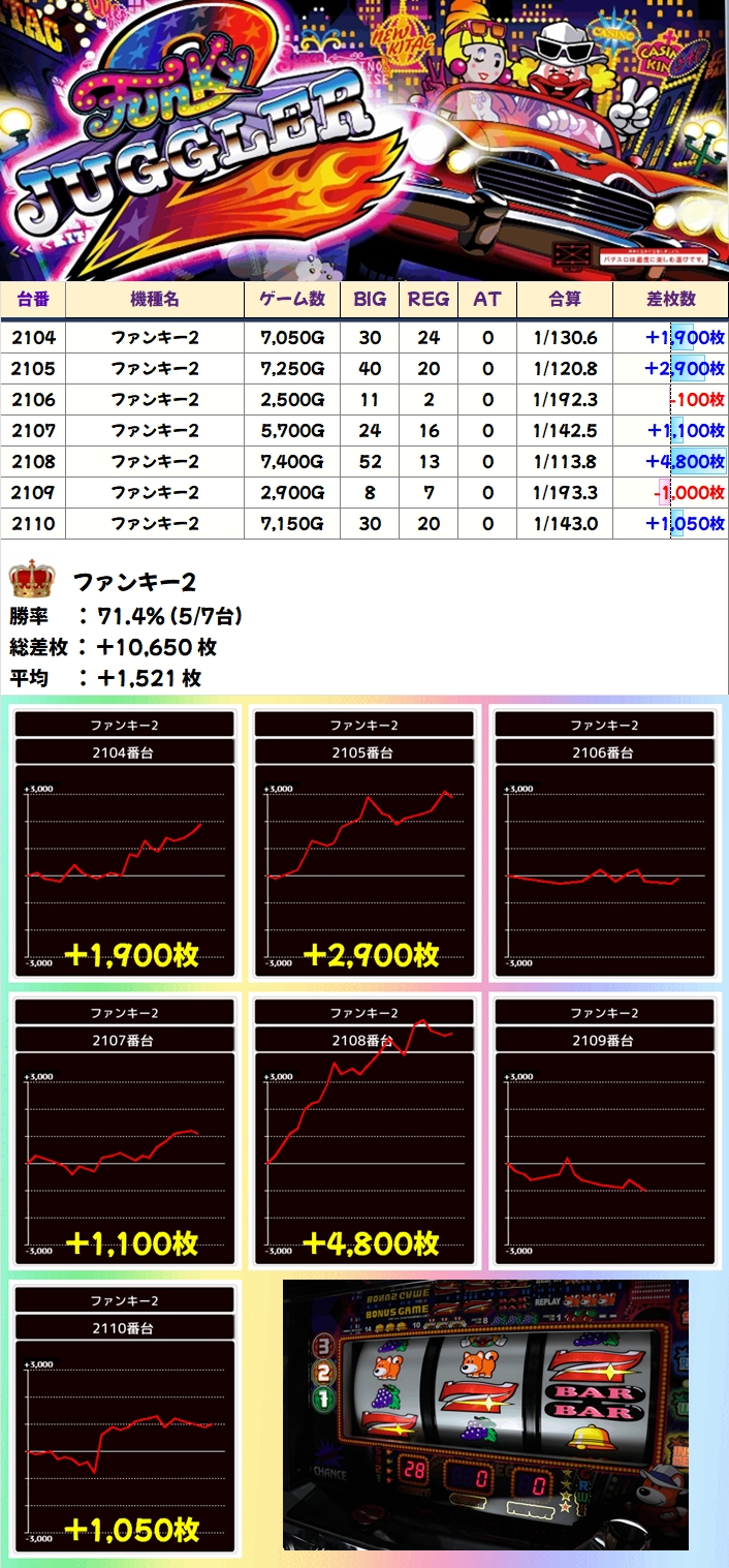 【全台系濃厚】ファンキー2(5/7台+)→平均+1,521枚