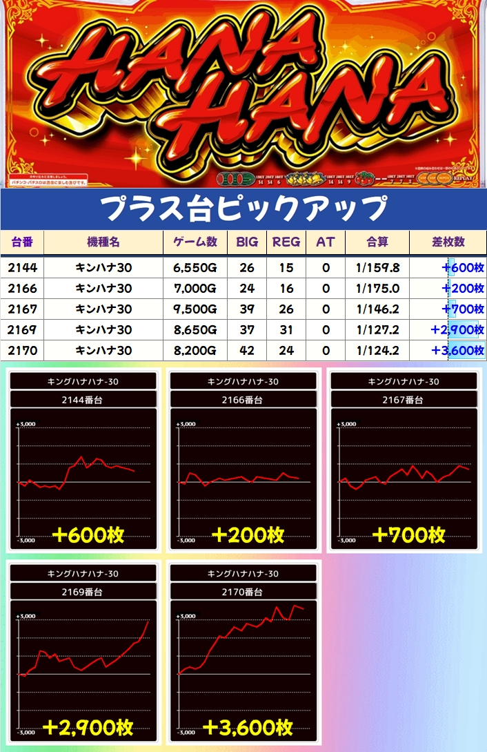【高配分】キンハナ30(5/10台+)→平均+395枚