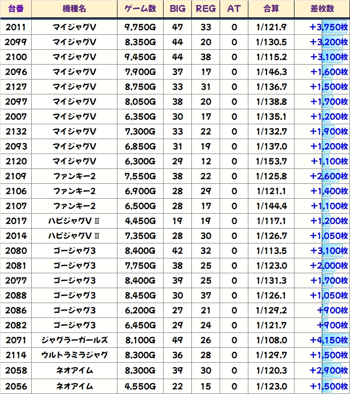 下記にジャグラーシリーズの優秀台をピックアップしていました!