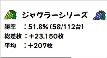 この日はジャグラーシリーズ全体が高配分になっていたようで、ジャグラー全体でも大幅プラスを記録!