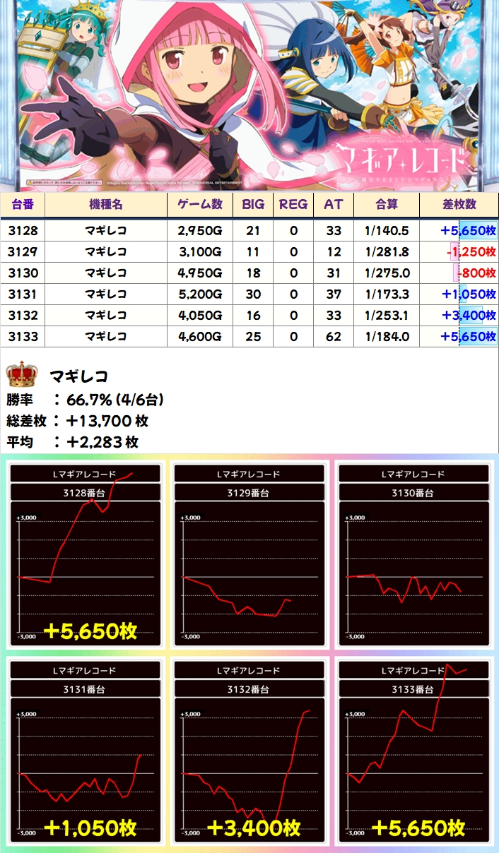 【全台系濃厚】マギレコ(4/6台+)→平均+2,283枚