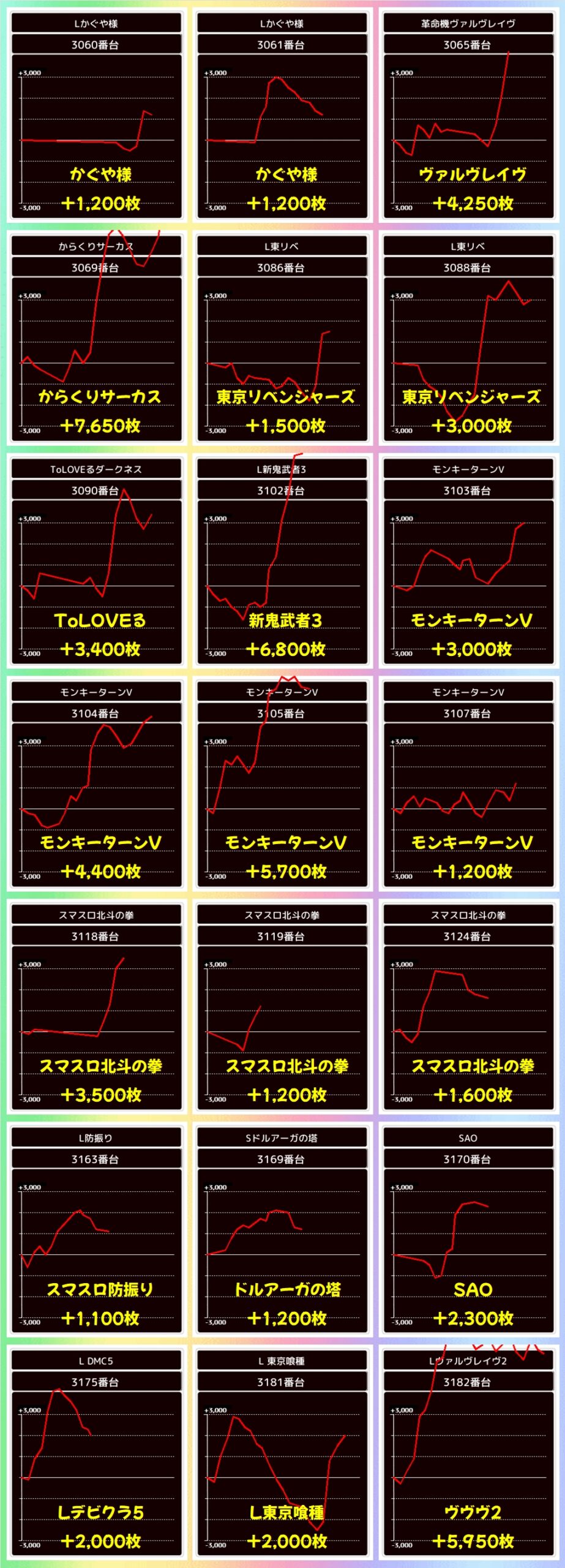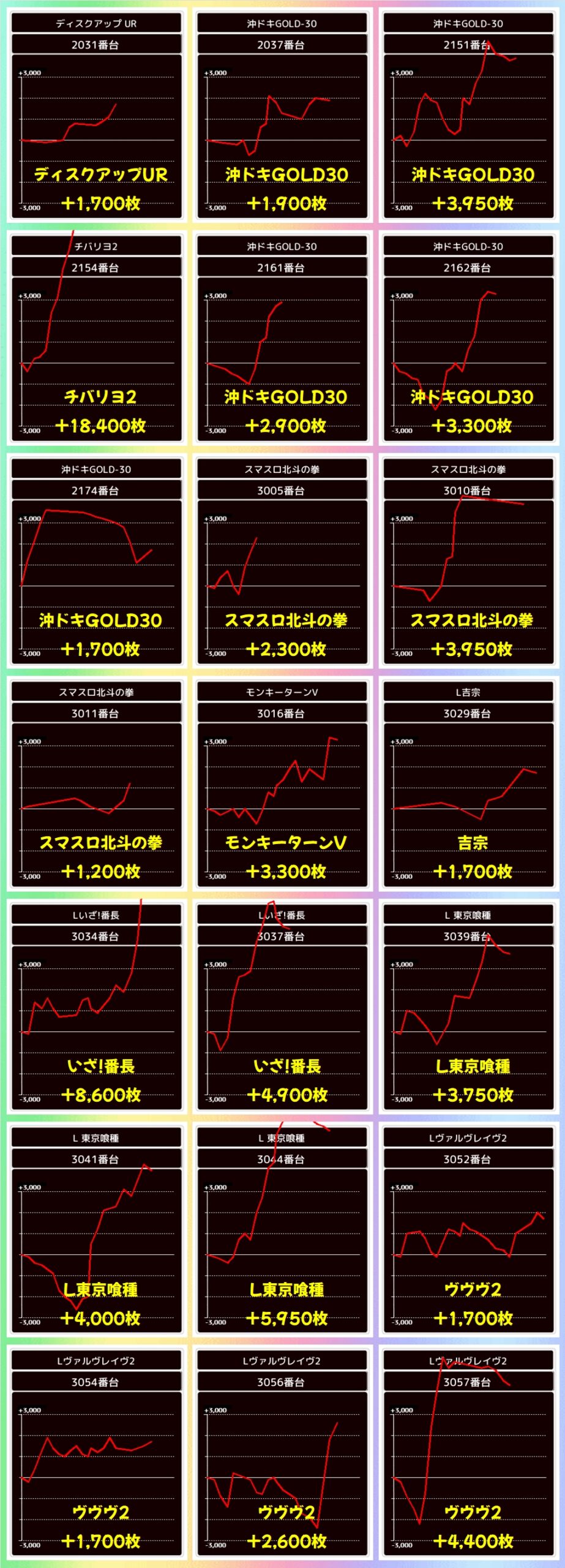 同店は日付に纏わる末尾が当たりになることが多いため、今回のような強イベ日は日付に纏わる末尾を意識して立ち回るようにしましょう。