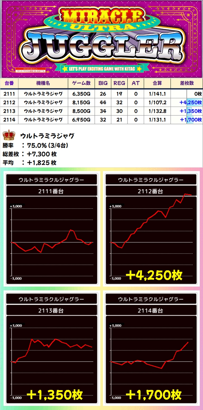 【全台系濃厚】ウルトラミラジャグ(3/4台+)→平均+1,825枚