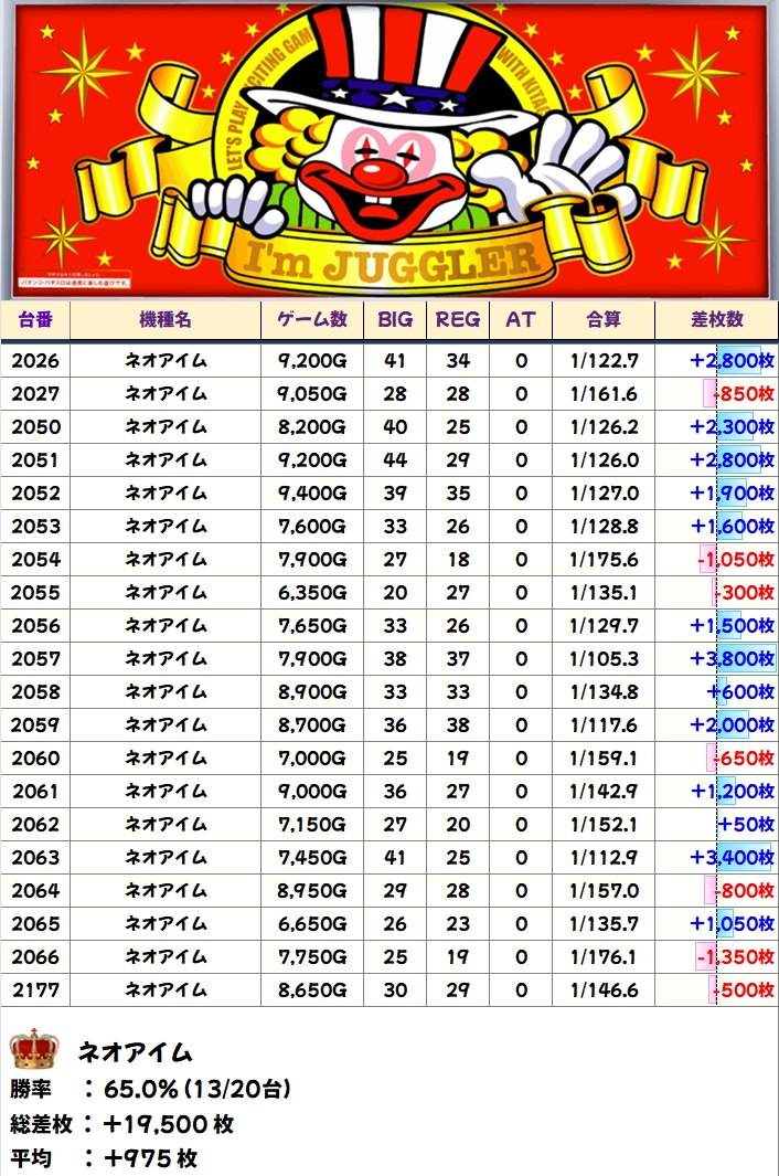 【全台系濃厚】ネオアイム(13/20台+)→平均+975枚