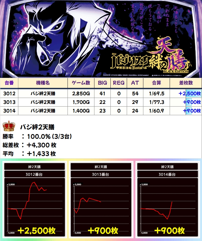 バジ絆2天膳(3/3台+)→平均+1,433枚