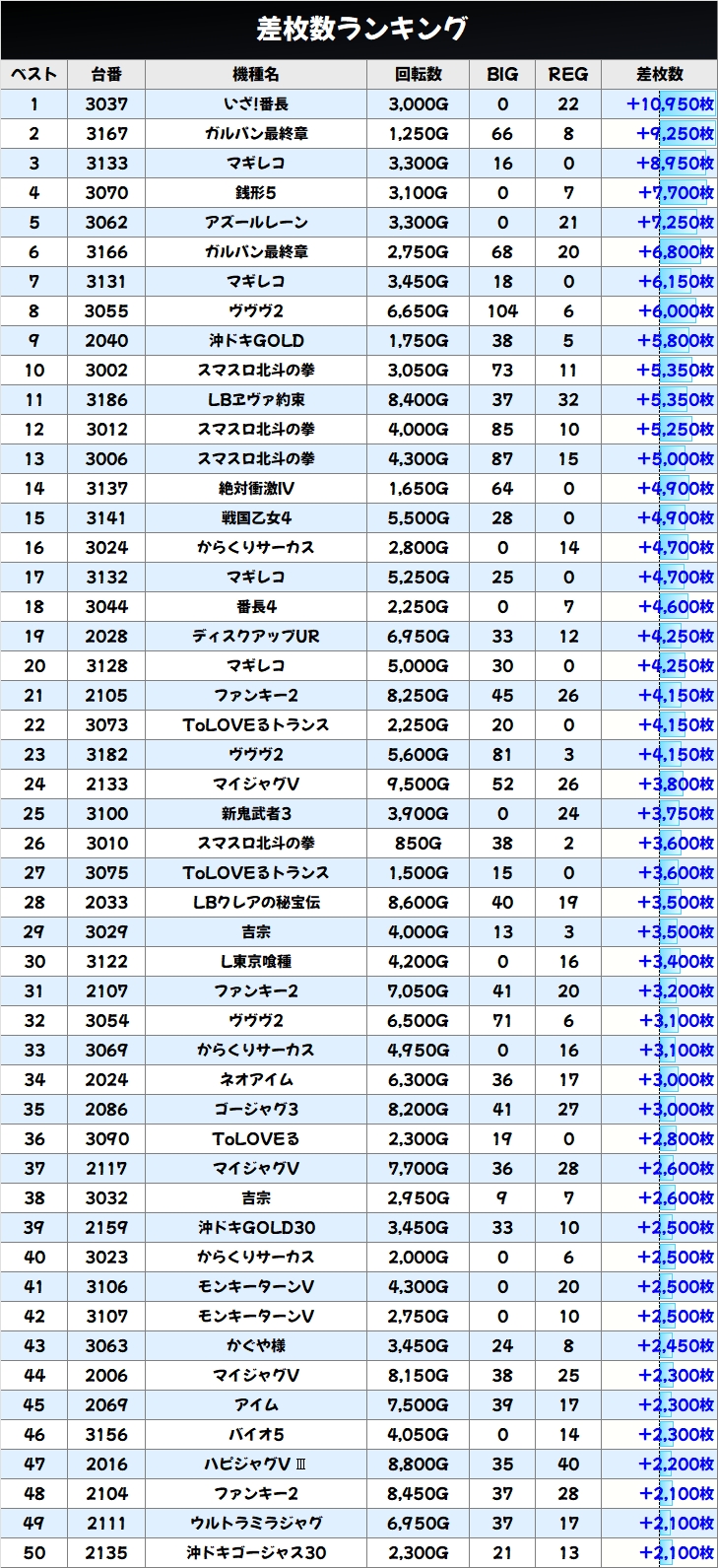 差枚数ランキング&島図チェック