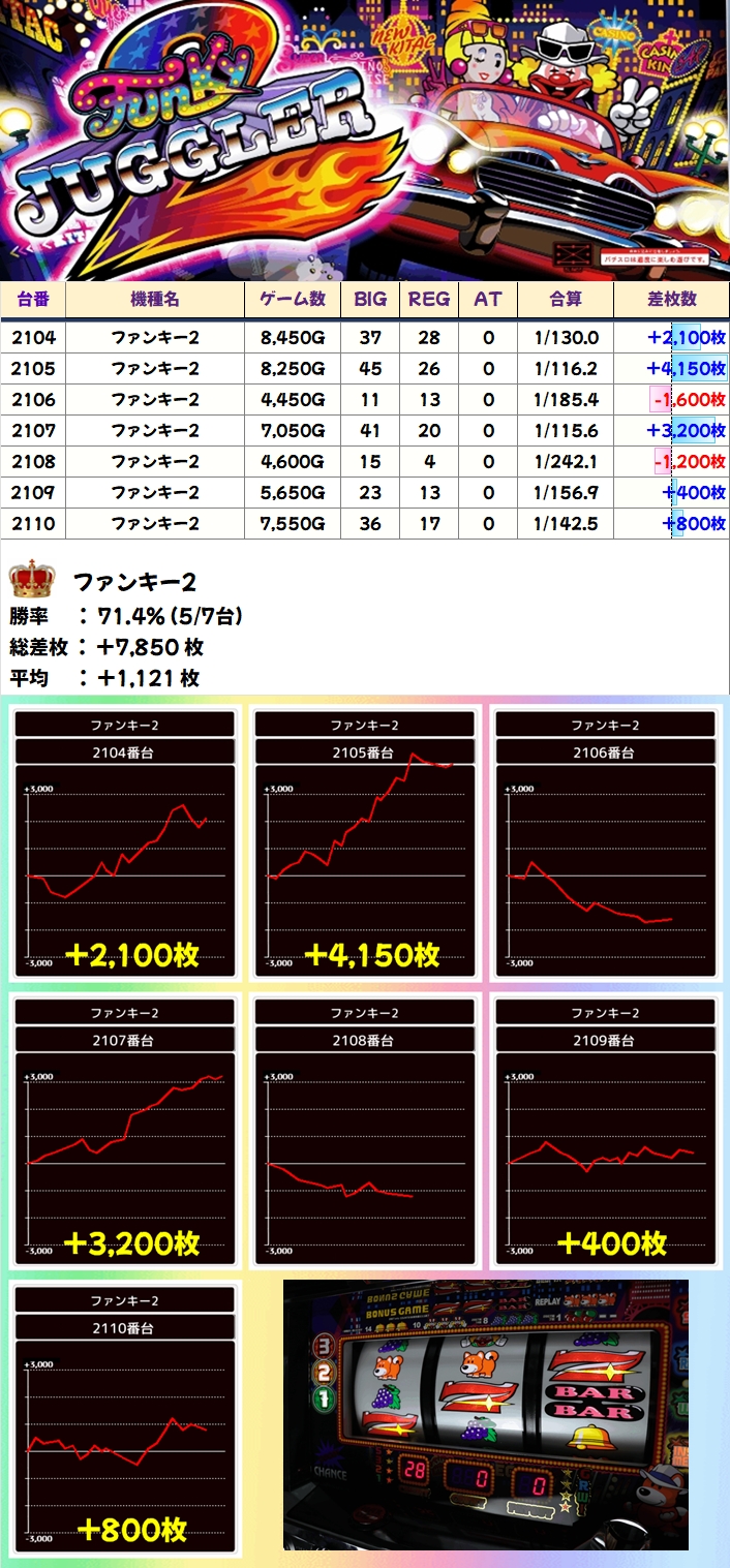 【全台系濃厚】ファンキー2(5/7台+)→平均+1,121枚